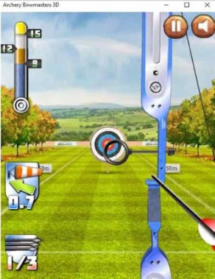 Archery Bowmasters 3D ialah game simulator memanah yang bagus. Dalam aplikasi game ini Anda sanggup melalui banyak sekali level mulai dari level satu. Di tingkat pertama Anda akan diperlihatkan sasaran samasukan dan Anda harus membidik pusatnya. Tembakkan panah sedekat mungkin ke sentra bullseye. Ini akan memdiberi Anda skor lebih tinggi. Untuk membidik, tekan pada haluan dan gerakkan bulat samasukan. Sesudah Anda pada posisi yang sempurna, maka lepaskan panah. Dari tingkat kedua dan seterusnya Anda juga harus menjaga kecepatan angin dalam pikiran anda, yang juga akan ditampilkan di sisi kiri jendela permainan. Anda dinilai menurut daerah mana yang sanggup Anda panah pada target.